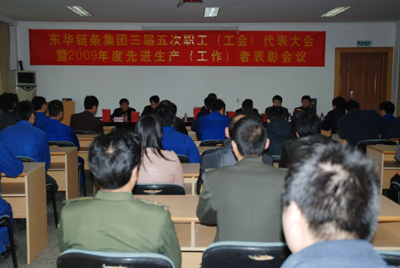 3月1日,東華集團(tuán)召開(kāi)三屆五次職工(工會(huì))代表大會(huì)暨2009年度先進(jìn)生產(chǎn)(工作)者表彰會(huì)議。總經(jīng)理張世強(qiáng);副總經(jīng)理廖杭州、袁立華;財(cái)務(wù)總監(jiān)趙鵬飛;董事宣志榮;工會(huì)主席魯小林等高層、優(yōu)秀中層、崗位標(biāo)兵、先進(jìn)(生產(chǎn))工作者代表等80多人參加會(huì)議。