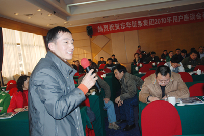 座談會后,東華中高層及銷售人員與廣大經(jīng)銷商、用戶代表就質(zhì)量、交貨期、價(jià)格、運(yùn)輸?shù)确矫娲嬖诘膯栴}進(jìn)行了分組交流,廣泛聽取了大家的意見和建議。期間,廣大經(jīng)銷商、用戶代表對位于余杭經(jīng)濟(jì)開發(fā)區(qū)東華的新區(qū)和南、北廠區(qū)中新建的國內(nèi)一流鏈條生產(chǎn)基地及先進(jìn)的工藝、工裝水平給予了高度評價(jià)。