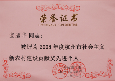 日前,東華鏈條集團(tuán)董事長宣碧華被中共杭州市委、杭州市人民政府授予 “2008年度杭州市社會(huì)主義新農(nóng)村建設(shè)貢獻(xiàn)獎(jiǎng)先進(jìn)個(gè)人”榮譽(yù)稱號(hào)。