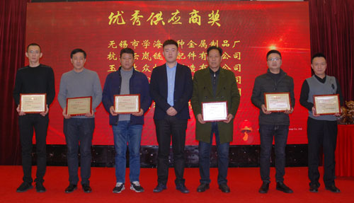 會上表彰了12“優秀供應商”和6“優秀配套服務獎”供應商。副董事長宣成向獲獎供應商代表頒獎并合影留念。