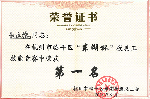 金秋送爽,丹桂飄香,在“9.26工匠日”來臨之際,公司員工趙遠(yuǎn)德奪得臨平區(qū)“東湖杯”模具工技能競(jìng)賽冠軍。
