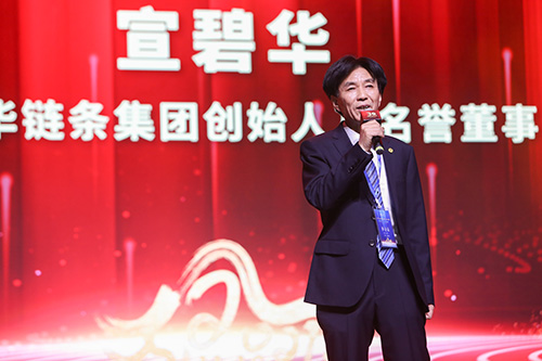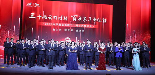 “鏈動世界”的開場舞后,集團創(chuàng)始人、名譽董事長宣碧華致辭。他說,東華三十年來從小做到大,產(chǎn)品從少做到多,從中國做到全球,從專注做到專業(yè),從耐心做成迷戀。三十年來得到員工的擁護,用戶的認可,同行的尊重。三十年中,我們穩(wěn)健經(jīng)營,專注制造業(yè),為了預防風險,東華三十年中消化了冷落,扛住了壓力,遵守誠信,擔當責任,創(chuàng)造價值。常言道十年磨一劍。東華三十年磨三把劍,誠信、責任、價值。今天東華還在路上,還要繼續(xù)擔當下去。感謝各位多年來對東華的支持,也感謝今天沒有來參加這次慶典大會的東華員工以及上下游產(chǎn)業(yè)鏈的朋友,祝大家身體健康、事業(yè)有成、家庭幸福。