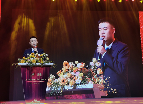 當晚,公司在藝尚雷迪森酒店隆重舉辦答謝晚宴,名譽董事長宣碧華、董事長宣成率中高管和業(yè)務骨干接待了參加慶典大會的客人。