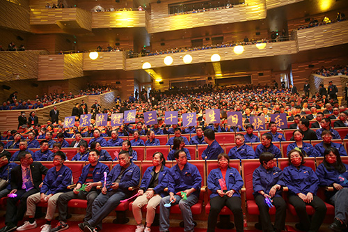 慶典大會在東華三十年輝煌發(fā)展的時間年輪視頻中拉開帷幕,整個慶典大會由“筑夢、跨越、奮進、致遠”四個篇章組成,六名員工組成的主持人團隊盛裝亮相主持。