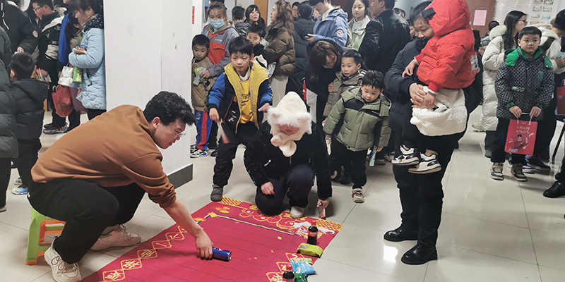 在公寓職工活動室,到處高掛著喜慶的燈籠,洋溢著節(jié)日的氛圍。公司各事業(yè)部、職能部門共12個分工會分別設置游戲節(jié)目,不僅有元宵節(jié)傳統(tǒng)的猜燈迷、投壺、飛鏢、套圈、投沙包等,也有新意的倒著說、掌上明珠、財源滾滾、摸彩珠等豐富多彩的小節(jié)目。現(xiàn)場隨處可見員工們帶著孩子一起參加活動,他們互相合作,協(xié)調(diào)配合完成各種游戲活動,大大增進了親子之間的互動交流。