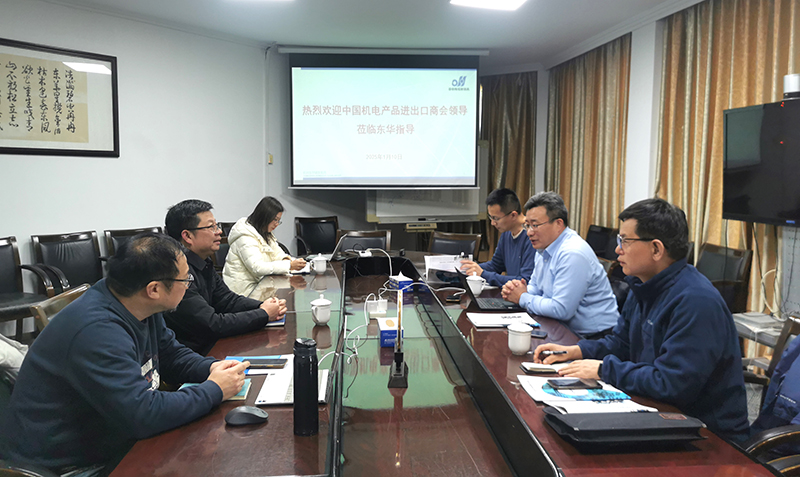 1月10日,中國機(jī)電產(chǎn)品進(jìn)出口商會行業(yè)發(fā)展部總監(jiān)、工程農(nóng)業(yè)機(jī)械分會秘書長于東科一行到東華調(diào)研外貿(mào)情況及美國新政府風(fēng)險影響、公司應(yīng)對策略等情況。副總經(jīng)理廖杭州、國際市場部副總經(jīng)理陳鵬等陪同調(diào)研。